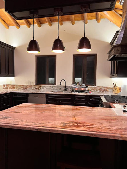 En esta obra se fabrican ventanales de PVC proteccion de filtro UV, pergola en area de terraza, percianas en ventanales, cocina completa incluye barra de cocina.
